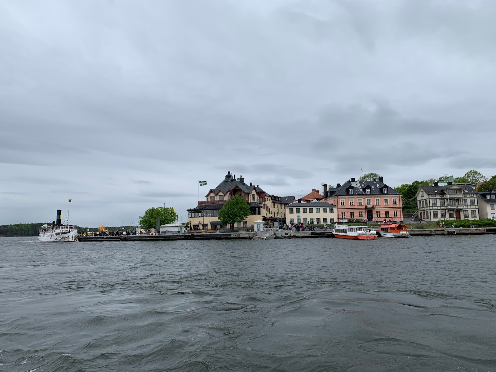 På väg mot Baggenstäket, en smal kanal in till Stockholm. Fina hus på vägen.